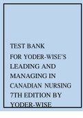 TEST BANK FOR YODER-WISE’S LEADING AND MANAGING IN CANADIAN NURSING 7TH EDITION BY YODER-WISE