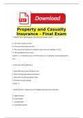 Property and Casualty Insurance - Final Exam Questions and Verified Answers (100% ) Correct