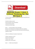 NUR200 Exam 2 Quiz 2 Critical Thinking for the RN Quiz 2 Questions and Verified Answers | 100% Pass Guaranteed | Graded A+ | NUR200 Exam 1(Nur 200 Hondros) Critical Thinking for the RN Exam 1 NUR200 Critical Thinking for the Registered Nurse