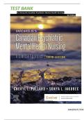 Test Bank - Varcarolis Canadian Psychiatric Mental Health Nursing, 3rd Edition (Pollard, 2023), Chapter 1-35. Full Chapters Include;...UNIT 1 Foundations in Theory 1 Mental Health and Mental Illness 2 Historical Overview of Psychiatric Mental Health Nursing 3 Overview of Psychiatric Mental Health Nursing Care Within Various Settings 4 Relevant Theories and Therapies for Nursing 5 Understanding Responses to Stress UNIT 2 Foundations in Practice 6 The Nursing Process and Standards of Care for Psyc...