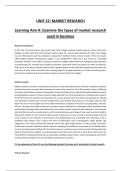 BTEC Level 3 Business - UNIT 22 Market Research | Assignment 1 (P1, M1 &D1))