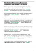 Mental Health nursing final exam Questions and Answers A+ Guide