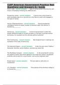 CLEP American Government Practice Test Questions and Answers A+ Guide