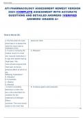 ATI PHARMACOLOGY ASSESSMENT NEWEST VERSION 2025 COMPLETE ASSESSMENT WITH ACCURATE QUESTIONS AND DETAILED ANSWERS VERIFIED ANSWERS GRADED A+