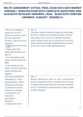 HELTH ASSESSMENT ACTUAL FINAL EXAM 2024-2025 NEWEST VERSION UPDATED EXAM WITH COMPLETE QUESTIONS AND ACCURATE DETAILED ANSWERS || REAL EXAM WITH VERIFIED ANSWERS ALREADY GRADED A+