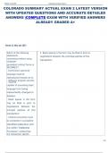 COLORADO SUMMARY ACTUAL EXAM 2 LATEST VERSION WITH UPDATED QUESTIONS AND ACCURATE DETAILED ANSWERS COMPLETE EXAM WITH VERIFIED ANSWERS ALREADY GRADED A+