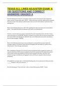 TEXAS ALL LINES ADJUSTER EXAM A 150 QUESTIONS AND CORRECT ANSWERS GRADED A