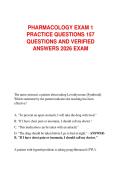 PHARMACOLOGY EXAM 1 PRACTICE QUESTIONS 157 QUESTIONS AND VERIFIED ANSWERS 2026 EXAM