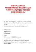 MULTIPLE CHOICE ANTIMICROBIALS (PHARM 1 EXAM 1) WITH RATIONALES 20252026 EXAM GRADED A+