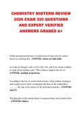 CHEMISTRY MIDTERM REVIEW 2026 EXAM 220 QUESTIONS AND EXPERT VERIFIED ANSWERS GRADED A+