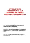 INTRODUCTION TO CYBERSECURITY 40 EXAM QUESTIONS AND VERIFIED ANSWERS 2026 EXAM GRADED A+