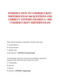 INTRODUCTION TO CYBERSECURITY MIDTERM EXAM 160 QUESTIONS AND CORRECT ANSWERS GRADED A+ 2026 CYBERSECURITY MIDTERM EXAM