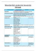 Woordenlijst waarin alle woorden in Latijns en Nederlands omschreven en goed uitgelegd staan. Alles over de romp en het bovenste lidmaat van de mens.