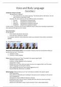 Hi! This is everything you need to learn for the Voice & Body language exam. This document is 54 pages and includes everything from the lectures (including experiments and images). This summary includes also examples for 4 exam questions. Good luck!