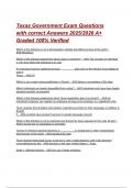 - Texas Government 2026 Exam Questions with correct Answers A+ Graded 100% Verified • Exam (elaborations)