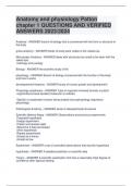 Anatomy and physiology Patton chapter 1 QUESTIONS AND VERIFIED ANSWERS 2023/2024 Anatomy - ANSWER branch of biology that is concerned with the form or structure of the body gross anatomy - ANSWER Study of body parts visible to the naked eye Microscopic Anatomy - ANSWER deals with structures too small to be seen with the naked eye histology and cytology Biology - ANSWER the scientific study of life physiology - ANSWER Branch of biology concerned with the function of the body a...
