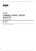 Aqa GCSE Combined Science (Trilogy) 8464/P/2F Question Paper and Mark Scheme June2022 100% Verified.