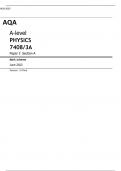 AQA A-level PHYSICS 7408/3A Paper 3 Section A Mark scheme June 2023