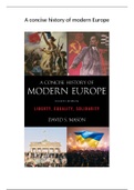 Dit is een zeer uitgebreide samenvatting van 67 pagina's over het boek "A Concise History of Modern Europe". Hierbij is dit de 4e editie van het boek uit 2019. Alle hoofdstukken zijn hierin samengevat inclusief de inleiding en de eindconclusie. Dit document leest makkelijk weg en dekt de volledige lading van het boek.