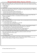 ATI 2019 Mental Health Practice A question, answers, and rationales for studying for ATI proctored examinations, offline studying, notes, and practicing test taking skills.