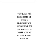 TEST BANK FOR ESSENTIALS OF NURSING LEADERSHIP AND MANAGEMENT, 7TH EDITION, SALLY A. WEISS, RUTH M. TAPPEN, KAREN GRIMLEY