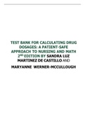 TEST BANK FOR CALCULATING DRUG DOSAGES: A PATIENT-SAFE APPROACH TO NURSING AND MATH 2ND EDITION BY SANDRA LUZ MARTINEZ DE CASTILLO AND MARYANNE WERNER-MCCULLOUGH