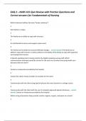 This document provides a complete review for EAQ 2 in NURS 101, typically an early assessment in a fundamentals of nursing course. It features practice questions and correct answers aligned with Essential Academic Questions (EAQs) commonly used in nursing programs to build clinical reasoning. Topics include infection control, vital signs, hygiene, communication, patient safety, and nursing process steps (ADPIE).