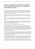 This document offers a complete review for the Conceptual Physics Comprehensive Final Exam. It includes clear and accurate practice questions with correct answers covering Newton’s laws of motion, momentum, energy conservation, gravity, fluid dynamics, wave behavior (sound and light), electricity, magnetism, and basic thermodynamics. Emphasis is placed on understanding physical principles through real-world examples without heavy math.