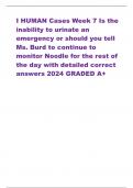 I HUMAN Cases Week 7 Is the inability to urinate an emergency or should you tell Ms. Burd to continue to monitor Noodle for the rest of the day with detailed correct answers 2024 GRADED A+