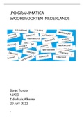 Het gaat over een po opdracht van nederlandse woordsoorten o.a. lidwoord, zelfstandignaamwoord,
