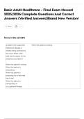 Basic Adult Healthcare - Final Exam Newest 2025/2026 Complete Questions And Correct Answers (Verified Answers)|Brand New Version!