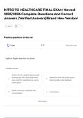 INTRO TO HEALTHCARE FINAL EXAM Newest 2025/2026 Complete Questions And Correct Answers (Verified Answers)|Brand New Version!