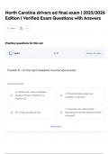 North Carolina drivers ed final exam | 2025/2026 Edition | Verified Exam Questions with Answers