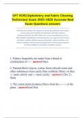 UFT IICRC(Upholstery and Fabric Cleaning Technician) Exam 2025–2026 Accurate Real Exam Questions answers This document contains the complete set of real exam questions with verified correct answers for the IICRC UFT (Upholstery and Fabric Cleaning Te