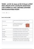 - TEXES - Art EC-12, texes art EC-12 Exam LATEST 2025 UPDATE WITH COMPLETE QUESTIONS AND CORRECTLY WELL DEFINED ANSWERS 100%GUARANTEED PASS!!! • Exam (elaborations)