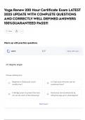 Yoga Renew 200 Hour Certificate Exam LATEST 2025 UPDATE WITH COMPLETE QUESTIONS AND CORRECTLY WELL DEFINED ANSWERS 100%GUARANTEED PASS!!!