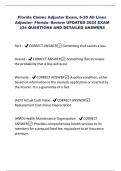 Florida Claims Adjuster Exam UPDATED 2024 EXAM 206 QUESTIONS AND DETAILED ANSWERS