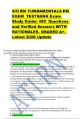 ATI RN FUNDAMENTALS RN EXAM TESTBANK Exam Study Guide: 402 Questions and Verified Answers WITH RATIONALES. GRADED A+. Latest 2026 Update