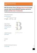 MTH 234 calculus 3 Exam 1 (Michigan State University) spring semester Latest Version 2026/2027|Questions and Correct Answers (Verified, Exam of mathematics