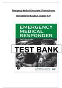 Test Bank Emergency Medical Responder: First on Scene 12th Edition Le Baudour Complete with Multiple Choice and Scenario-Based Questions (Chapters 1–27) This document includes the full test bank for Emergency Medical Responder: First on Scene (12th Edition) by Le Baudour. It features hundreds of questions across 27 chapters in multiple formats, including multiple choice, true/false, and case-based scenarios. Covered topics include EMS systems, legal and ethical care, airway management, trauma,...