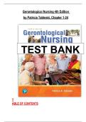 Product Description Gerontological Nursing 10th Edition Eliopoulos Test Bank ISBN-13:1002 Table of Contents UNIT 1 The Aging Experience Chapter 1 The Aging Population Chapter 2 Theories of Aging Chapter 3 Diversity Chapter 4 Life Transitions and Story Chapter 5 Common Aging Changes UNIT 2 Foundations of Gerontological Nursing Chapter 6 The Specialty of Gerontological Nursing Chapter 7 Holistic Assessment and Care Planning Chapter 8 Legal Aspects of Gerontological Nursing Chapter 9 Ethical Aspect...