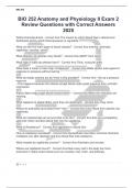 BIO 252 Anatomy and Physiology II Exam 2 Review Questions with Correct Answers 2025
