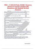 PMH – C 2025 ACTUAL EXAM 2 Versions (Version A and B) Complete 400 Questions with Detailed Verified Answers
