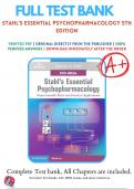 Test Bank For Stahls Essential Psychopharmacology 5th Edition Stephen M. Stahl, 9781108838573, Chapter 1-13 All Chapters with Answers and Rationals