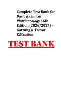 Complete Test Bank for Basic & Clinical Pharmacology 16th Edition (2026/2027) – Katzung & Trevor