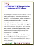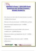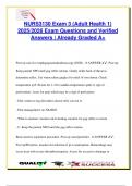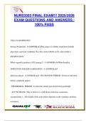 This final exam prep for NURS 3303 offers 100+ verified NCLEX-style questions and answers, tailored for the 2025/2026 academic year. Topics include pain and comfort management (acute vs chronic pain), fall risk and patient safety, types and staging of pressure injuries, oxygenation, airway and respiratory support, safe medication administration, IV therapy, mobility and immobility complications, sterile technique, and evidence-based practice in clinical scenarios. Detailed rationales included to...
