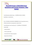 This NURS 3345 Exam 2 prep document features over 130 detailed questions and answers for the 2025/2026 academic year. Topics include pathophysiology, diagnostics, and treatment of renal tubulopathies, acid-base imbalances (metabolic/respiratory acidosis and alkalosis), nutrition and electrolyte management, acute and chronic sinusitis, acute/chronic pancreatitis, inflammation mechanisms, respiratory infections (TB, pneumonia), COPD, asthma, CF, and COVID-19. Key systems covered include renal, pul...