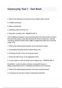 Blesse On this page, you find all documents, package deals, and flashcards offered by seller blesse. 372 Documents 0 Flashcards 0 Package deal Community 0 Followers 0 Following 1 Reviews received 0 0 0 0 1 7 months ago • tmarymaluleka HED4805 Assignment 4 (COMPLETE ANSWERS) 2025 (182074) - DUE 22 August 2025 372 items Everything Documents Flashcards Package deal Best sold Newest Rating Brain pop -brain questions and answers (0) $8.49 0x sold Brain pop -brain questions and answers i x Exam (elaborations) • 1 pages • by blesse • uploaded 2025 Quick View i x Brainpop • Brainpop Community Test 1 - Test Bank questions and answers (0) $8.49 0x sold Community Test 1 - Test Bank questions and answers i x Exam (elaborations) • 82 pages • by blesse • uploaded 2025 Quick View i x community health • community health Community- Stanhope- 4th edi- chap 24 questions and answers (0) $8.49 0x sold Community- Stanhope- 4th edi- chap 24 questions and answers i x Exam (elaborations) • 9 pages • by blesse • uploaded 2025 Quick View i x community health • community health Community Nursing-Chapter 1 questions and answers (0) $8.49 0x sold Community Nursing-Chapter 1 questions and answers i x Exam (elaborations) • 17 pages • by blesse • uploaded 2025 Quick View i x community health • community health Community Nursing, Canadian Perspective, 4th edition, week 1&2 cont questions and answers. (0) $8.49 0x sold Community Nursing, Canadian Perspective, 4th edition, week 1&2 cont questions and answers. i x Exam (elaborations) • 3 pages • by blesse • uploaded 2025 Quick View i x community health • community health Nies Community Chapter 1 questions and answers (0) $8.49 0x sold Nies Community Chapter 1 questions and answers i x Exam (elaborations) • 9 pages • by blesse • uploaded 2025 Quick View i x community health • community health Nies Community Chapter 1 questions and answers (0) $8.49 0x sold Nies Community Chapter 1 questions and answers i x Exam (elaborations) • 9 pages • by blesse • uploaded 2025 Quick View i x community health • community health N350 chapter 1- the history of community health nursing in Canada questions and answers (0) $8.49 0x sold N350 chapter 1- the history of community health nursing in Canada questions and answers i x Exam (elaborations) • 33 pages • by blesse • uploaded 2025 Quick View i x community health • community health Introduction to CHN Ch. 1 questions and answers (0) $8.49 0x sold Introduction to CHN Ch. 1 questions and answers i x Exam (elaborations) • 14 pages • by blesse • uploaded 2025 Quick View i x community health • community health History of Community Health Nursing in Canada questions and answers (0) $8.49 0x sold History of Community Health Nursing in Canada questions and answers i x Exam (elaborations) • 6 pages • by blesse • uploaded 2025 Quick View i x community health • community health 1 ... 11 12 13 ...