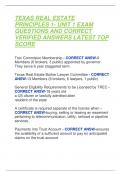 TEXAS REAL ESTATE PRINCIPLES 1- UNIT 1 EXAM QUESTIONS AND CORRECT VERIFIED ANSWERS LATEST TOP SCORE