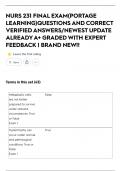 NURS 231 FINAL EXAM(PORTAGE LEARNING)QUESTIONS AND CORRECT VERIFIED ANSWERS/NEWEST UPDATE ALREADY A+ GRADED WITH EXPERT FEEDBACK | BRAND NEW!!